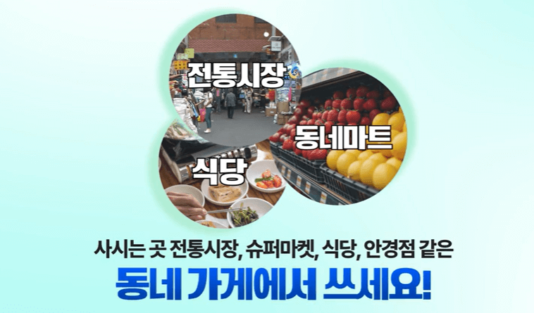 - 사용 가능: 전통시장, 편의점, 소상공인 업장 등